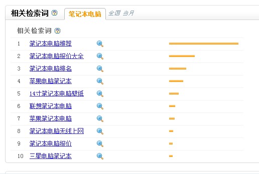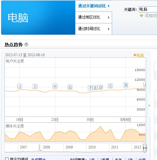 长尾关键词的作用毋庸置疑,而想要网站有很高的转化率,就主要靠长尾关键词了。很多seoer开始还在分析这个关键词指数难易程度,到底要不要做抉择的时候,就已经忘记了做一个网站的主要目的就是盈利。而盈利的主要方式就是靠转化率,而一个网站的转化率主要就是靠长尾关键词了。 下面做一个对比: 1.以百度指数电脑为例