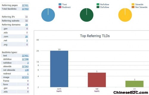 这是关于九块邮网站外链分析的数据,从数据来看: 外链总域名数28个,相对是比较少的,但是看外链总数,22402条,相对而言是比较大的,可以推断出肯定有一部分网站给了九块邮全站链接; 从外链域名后辍来看,相对比较集中,因为外链总域名数也只有28个,从上图中可以看出,.com的外链域名数有20个,.net外链域名数有5个,.cn外链域名数有3个; 从外链的形式来看,文字链接22401,图片链接22272,再结合外链的总数来看,有很多页面同时有文字链接,也有图片链接,从整个链接形式的分布来说,还是可以的;