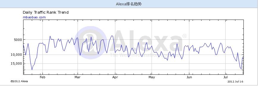 观察发现第一个网址应该是列表产品页面的第一个页面,如果进行URL标准化,要么将上面的第一个网址301重定向到下面的网址,要么直接用下面的定向到上面去,这样就不会分散权重了。 同理大家还可以选择一个热门分类查看,如“单肩包”也是动态的网址: ?od=31&op=2&cid=100&ci=217&l=hc1_1_1 还有一个例子就是Robin组织搞的BSG论坛,其URL也是动态的,这一点抛开不说,但是在其网站内部介绍的百度搜索引擎优化指南中《规范、简单地URL》一栏中明确要求大家采用一个网页对应一个网址,动态的网址虽然能够收录,但是要减少参数,避免搜索引擎掉进黑洞。麦包包的URL的优化还有待加强。 4、网站流量变化趋势 在chinaz的站长工具中我观察到其统计的Alex排名趋势中麦包包的网站流量变化是减少的,这一点让人觉得最近其SEO情况,或者广告投放情况等流量引导方面有一定的问题,下面看看流量趋势图,从今年年初2月份到7月份整体的流量趋势是下降的,而且流量的波动很大,这对于一个以定量广告投放和SEO为主的网站来说有点不正常,也许某个环节除了问题,当然不深入的分析得不到很好地结论: