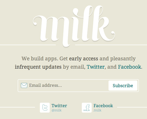 Milk家的细节处理方式会让用户更加乐于订阅他们的新闻邮件。他们的做法与Hunch类似,都是在文案中明确的告诉用户新闻邮件的重要性,而且不会很频繁。