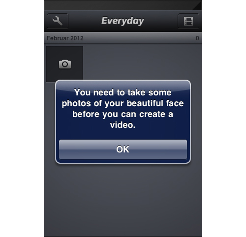 文案 文案是最容易展现产品个性的途径。无论你希望自己的品牌变的更加好玩、严肃、滑稽或是时髦,文案都可以有效的帮助你向目标迈进。 恭维 在”Everyday”应用当中,如果你还没有向媒体库中添加照片,那么系统就会非常友好的提示你去给自己“漂亮的脸蛋”拍些照片放到库中——简单的词汇定义了提示信息甚至是产品的基调,换句话说,就是个性。