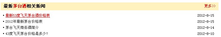 如上图这样,如果将"茅台飞天商务酒"做为一个长尾关键词来看的话,标题中要出现,然后在网站中第一次出现该关键词的时候,将该关键词加链接指向所对应的产品页面,长此以往,被指向的产品页面权重便会累积,在达到一定阶段以后,该产品页面肯定会获得一个不错的排名。 三、相关链接 还是以上面"茅台飞天商务酒"为例,在文章正文的下面,如果加上这些相关的链接推荐,一方面会使蜘蛛访问时,对这个页面与"茅台飞天酒"的相关度给一个不错的评价,另一方面也会更适合用户浏览,获得更多的信息,增加用户粘性。