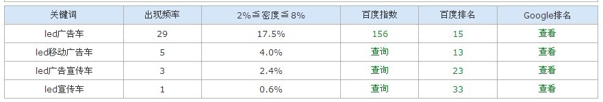我这个新网站全站都是围绕着led广告车这个关键词来进行展开的,用户进入我的网站是找不到与led广告车无关的内容,这个很关键,因为用户搜索led广告车进入我们的网站,当然是要看led广告车相关资料,但是如果我们网站中出现一些比如洒水车、油罐车、垃圾车之类的内容,对用户而言,是有干扰性作用的。说浅显点,你买衣服的时候是愿意去杂货铺呢还是去专卖店呢?所以网站的专业性很重要。很多人会说,如果做单一性的产品,那网站的关键词密度不是过高了么?那可能会被搜索引擎认为是过度优化,这完全是无稽之谈。我们一要一味地相信那个站长工具的关键词密度的建议,只要你的网站能够对用户提供有价值的内容,关键词密度再大,对我们网站排名也是没有任何影响的。上图中我网站的案例就很好地说明了这一点,你看我网站led广告车的关键词密度高达17.5%,如果说关键词密度过高会受到百度的处罚,我想我的网站也不会进入前二十名了。 所以中小型企业站点如果想更具有竞争优势,就必须做到小而精,采取各个击破的战略,如果你公司有几款不同类型的产品,那么建议你一种类型的产品做一个站点,这样是更利于SEO的,因为对用户而言,你提供的是专一性的内容,不会对用户形成干扰,对搜索引擎而言,它会认为你的网站相关性更高,搜索引擎更愿意将相关性更高的站点展现给用户。如果你想了解更具体的小型企业站的优化方案,请百度搜索“程力传媒”或者点击此篇文章来源处的锚文本或者百度搜索“程力传媒”,欢迎能与大家多多交流。 本文由程力传媒led广告车原创提供,转载请尊重原创信息。 (责任编辑:admin) |
