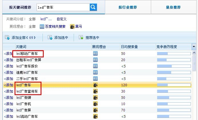 在网站建立之前,我们首先要对用户的需求和搜索习惯进行分析,合理地进行布局,那么我们就必须要用到一些百度官方的工具,而不是凭借自己的直觉,否则你很有可能进入误区。百度官方提供的工具有很多,那么用在网站的布局上,我们在网站建立之前主要为大家介绍两款工具供大家保用:1.百度推广助手;2.百度指数。下面我们来一一进行分析。 百度推广助手为站长提供了一款相当给力的数据分析工具,其中关键词查询功能是免费的,不过对地域性的数据信息的查询,必须要开通百度推广帐户才能保用,介于部分人没有做百度推广,因而也没有百度推广帐号,在此主要说说免费的一些功能。首先我们得安装一个百度推广助手的软件并注册一个帐号,下载地址的话可以直接去百度搜索下载,在此不多说。然后进入百度推广助手,点击左上角的高级搜索,然后输入你要查询的相关关键词,以我的网站的关键词led广告车为例,请看下图: