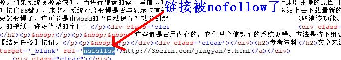 笔者刚开始以为站点可以获得不错的权重传递,但是当笔者无意间翻看百度经验页面的源代码后,发现这只是自己的一厢情愿,百度经验并不能传递笔者想要的高质量权重,因为这些外链都被nofollow掉了。如下图所示。