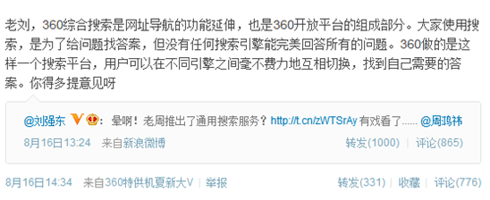 根据上面的统计,也许360搜索真的是百度之后的第二大搜索引擎,17日网站后台统计中出现来自360搜索的来源,四天以来,来自360的搜索来源确实超越除百度之外所有搜索引擎,仅次于百度的第二大搜索。 “红衣大炮”周鸿祎只有一条微博提到了360搜索,而且是回复的京东刘强东。周鸿祎在做3712时就曾经和百度短兵相接,而现在拥有海量用户的360再次推出搜索,“红衣大炮”却是反常的低调。也许,这只是黎明前的黑暗,暴风骤雨前的平静。
