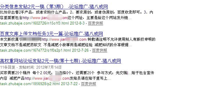 7):威客类,一般都是发布软文外链任务留下的链接,这个没经济实力的站长也请勿模仿。而且在威客类网站留下的外链太多的话,有传闻说可能会引起降权,当然只是传闻,看来起码在该站身上并没有产生负作用。