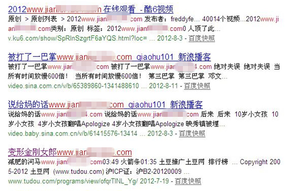 4、下面使用domain命令看看这个站的外链具体情况。也许有站长会说百度domain命令不准,是不准,但这不妨碍我们从中看出个大概来,看出趋势来,这就足够了!此站外链建设主要分以下几大类: 1):视频网站类,而且几乎在外链里占到大多数。视频类网站外链不稀奇,可是做这么多可能有点出乎很多站长意料,但是据我观察有不少网站的外链都开始倾向视频网站类。视频网站外链做起来挺方便,而且外链较稳定,只是对站长的带宽要求较高,毕竟上传文件不像发个帖子那么快!下一步有时间研究一下视频类网站外链的权重质量如何,因为毕竟只有纯文本,不知实际效果和作用如何!