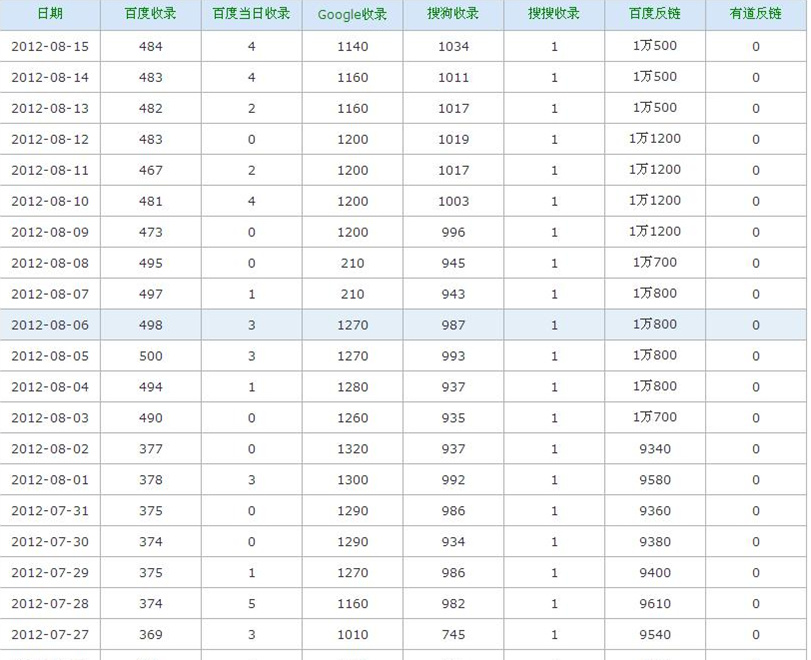 3、外链的近期历史数据。真的是很稳定,有波动,但很小,不像在网上抱怨的那些站长那样动不动就被拦腰砍一半。说明什么?说明外链质量高!被删很少,增加稳定!