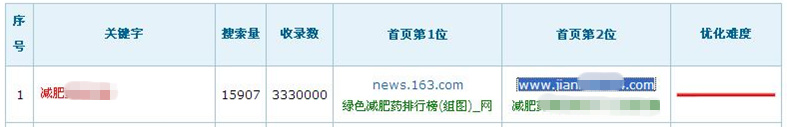 前一段时间百度的连续调整让很多站长外链大降,一时间怨声此起彼伏。但机会是留给有准备的人,当人人抱怨的时候,更是需要冷静下来仔细思考对策的时候。思考没有头绪?ok,咱就走捷径,模仿还不成么?咱就走高手走过的路,省时省力又安全! 来看一个牛站,一个做减肥类关键词seo的单页淘宝客网站!大家也都知道,百度现在不太待见淘宝客站,所以更能突显这个站的水平!这个站值得学习的地方很多,但这次咱就仔细关注一下外链建设部分! 1、该站主攻关键词的难度!看看这数据,而且是减肥类关键词,这个词的难度大家应该心里有数了吧!