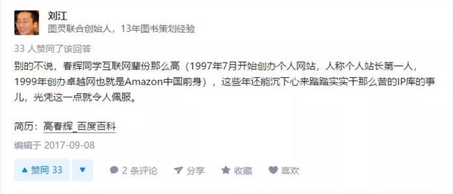 知乎上有一则提问,叫“如何评价高春辉?”除了清一色地肯定和赞许,就是对他当下所做IPIP的感慨:这些年还能沉下心来踏踏实实干那么苦的IP库的事儿,光凭这一点就令人佩服。