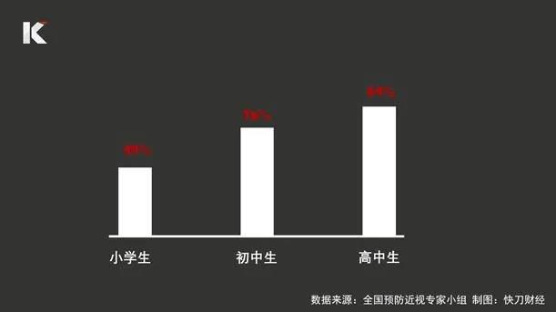 线下业态之所以一遇疫情便是危重症,主要是 3 个环节出了问题:租金、工资、库存。视立美C2M定制模式,在这场没有特效药的疫情中展现了自身抵抗力。 01.租金。一旦经营停摆,门店租金成为直接损耗,视立美也在所难免。 02.工资。由于门店无需打磨师傅,人力配置数量更少,工资成本低于同行。 03.库存。由于先下单再生产,无论镜片还是镜架,视立美都没有任何库存。 C2M定制模式让门店经营变得足够轻。这样一来,视立美就有余力去完善同行很难兼顾的东西:产品和服务。 首先是产品专业化。 专注青少年近、弱视防控,在光学和医学角度上其实并不是一件容易的事。 余俊毅介绍到,目前市面上流通的普通眼镜,基本上都是单焦镜片。这使得眼睛只能通过一个焦点看物体,很容易产生像差并导致眼部睫状肌疲劳,最终眼轴拉长、近视加深。 此外,目前整个眼镜行业,并没有“青少年标准”。目前中小学生戴的眼镜,其实是以成人标准来设计的。 这样一来,青少年近、弱视防控就不能从根本上实现。一份全国预防近视专家小组调查数据显示,国内城市小学生近视率为49%、初中生为76%、高中生为84%。 这个数据还在攀升。当下中国青少年近视数量,每年还将以8%-9%的速度增长。主要原因除了环境污染、电子产品普及、饮食结构不均等,就是不良眼镜产品的使用。