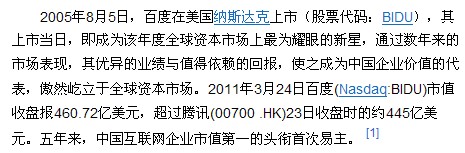 在百科词条中的主体内容中我们可以发现,都加上了许多词条内链,点击相应的锚文本就会进入到另一个百科词条中。如此,不仅能提高用户体验,增加蜘蛛的爬行深度,同样的也能让访客更深入的访问,可谓是提高pv值。 5.扩展阅读与参考资料的相关性 拓展阅读与参考资料对于词条本身而言,就好比我们常见的友情链接,就算出现形式并非锚文本(参考资料已以锚链接形式),但其链接与词条的相关性确实极高,而这也是为何如此在编辑词条中加入链接的原因所在,由此可反映出网站优化中,其相关性的重要性! 以上,均为从网站优化的角度去发现百科词条优化细节之处,通过对此深入的观察与发现,百科词条的排名并非仅仅是因为为百度产品这么简单。只要细心去观察并合理布局,相信同样可以排在百科之前。本文由输送带 编辑供稿,转载请注明出处。 (责任编辑:admin) |