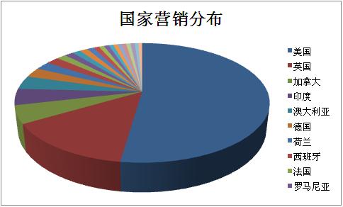 从上面的图表信息中可以看出,美国占了很大一部分,并且女性营销人员也在逐渐增加,从2012年的20.6%到2012年的23%,但仍然有一个相当大的性别差距。 2、国际性营销人员比例分布 2012参与调查的国家有65个,这里例举了前25名受访国家: