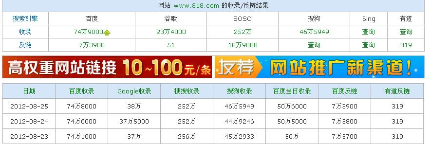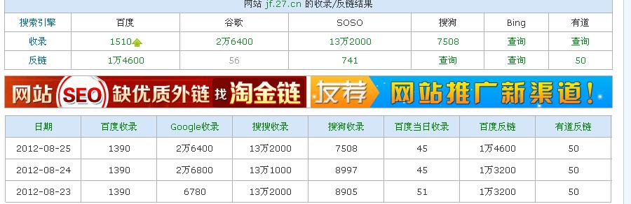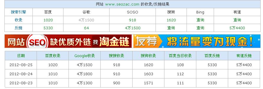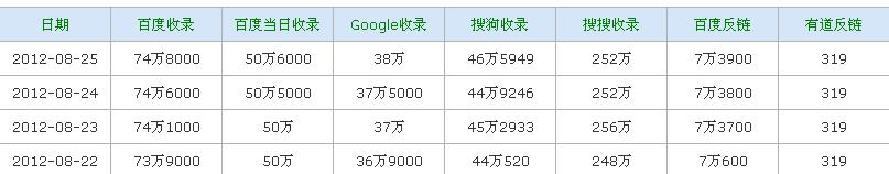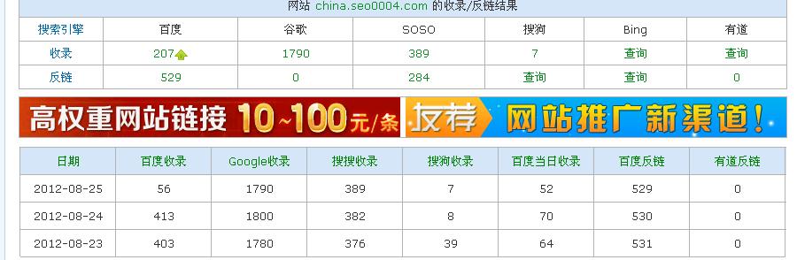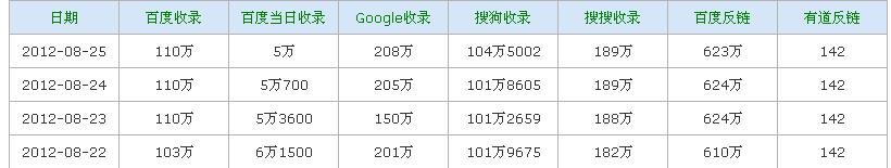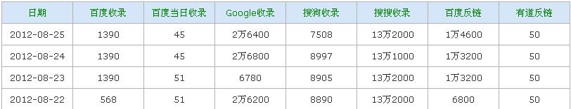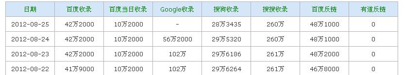 8月25日晚百度又行动了,谁受牵连了 昨天晚上,21点50左右,百度进行了有一次大扫荡,这扫荡山东seo感觉是今年历次扫荡中最猛的一次,直吓的我出了一身冷汗。为什说本次扫荡是最猛的因为就我的小站来讲,经历了前所未有的大震荡,因为,在过去的历次扫荡中,本站得收录和反链波动都比较小,而唯有这次波动的最厉害,所幸的是,这次波动虽大,但是排名没怎么受影响,只是个别关键词的内页排名消失了。下面请大家看图1: 图1.