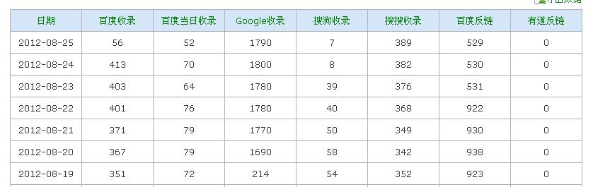 从图上我们可以看出,小站的收录数从8月24日的413一下子掉到了56,而反链早在8月22日就发生变化了,大家请看图2: 图2.