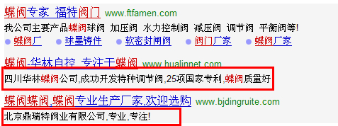 大家可以看到,前3位竟然全部是你百度自己的,你的百科做得好,无可厚非。难道你的知道也做得比别人鲁迅纪念馆,鲁迅美术学院里的都好吗?这个我就不相信了。可见你是如此地不公平。没有一个公平的环境必然会被很多人所抛弃,特别是建站人员,难怪乎,网络已经掀起了一股支持360搜索的风。 3,不专业 这个不专业,不是说你搜索技术不专业。而是说你赖以生存的百度竞价的不专业,我在百度里搜索温州蝶阀,出来的推广链接确实四川和北京的。这完全违背了我的初衷,我明明想到温州就近买产品,你非要把别人的竞价凌驾到我的想法之上。而如果大家去阿里巴巴,东瓯泵阀网等行业站点里找这样的产品,必然是可以按区域划分的。可见竞价也有多少地方做得是如此不专业,只是提供一个流量入口,忽悠一些不知情的网民去购买产品了。下面是 搜索温州蝶阀的截图: