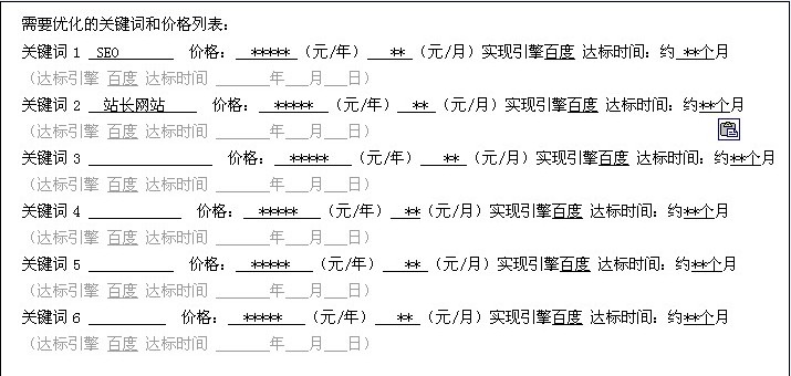 上面说的是根据综合因素来报价,现在也有很多SEO公司接单直接依据某一项数据来报价,比如说搜索量,如果搜索量达到某个标准就给出一个价格段。笔者认为单纯的从某一项数据来估算价格是不科学的,也是对自己,对客户不负责的。所以大家要根据自身因素和决定报价方式。 以上就是笔者关于SEO关键词报价的一点点心得。顺带的说下,客户有的不会同意按年付费,有的为了保险起见,会要求按月付费,我们在报按月付费的时候,一定要比按年付费的单价高一些,毕竟按月付费我们也承担一些风险。按月付费一点要在报价单上详细写出月付价格,比如下图: