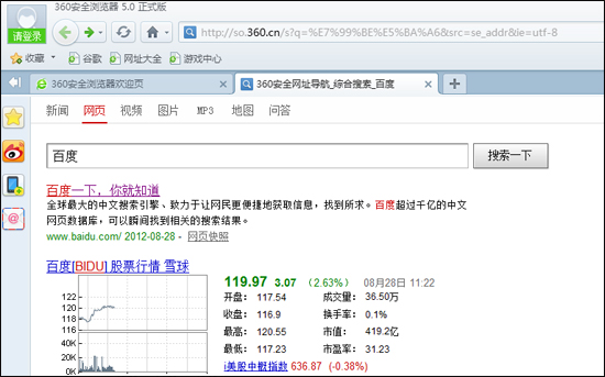 李开复大家都知道,他昨晚凌晨发了一条这样的微博:“问:百度和360今晚的争夺战谁会输?答:用户。”,以简短的话语对8月28日晚的360百度第二战做出评价,算是比较中肯的了! 那么8月28日晚上百度和360到底又发生什么样的争夺呢?一大早,笔者就分别对两个搜索引擎做出案例分析,接下来就把笔者的分析结果给大家分享,不代表任何立场,全是个人观点。 先看一张张截图: