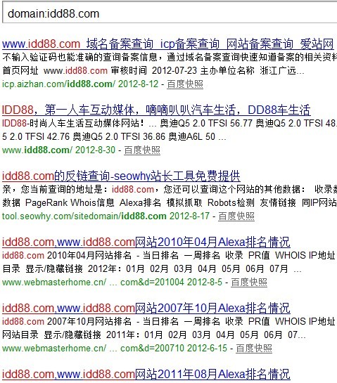 大家可以看出,除了百度的快照,就是这个站的排名,这外链做的极差,质量非常的低下,试问如何差劲的外链资源,如何才能提升你的网站?而且可能其中一个细节大家估计么看到,大家可以看上图,在domain:的命令之下,为何你的快照在别的页面之下,这更说明了你的站严重有问题大家不信可以试试自己的站,你用domain:命令之后,你的快照排在哪? 分析三 整个网站通篇文章下来,随便找个文章,截取里面部分的内容,在百度上搜索一下,都是别人的原创文章内容,么有一篇是关于你的网站的,在这就不细讲,大家可以去试试看,这就说明一个问题,你的文章原创性太少,伪原创太多,就算被百度收录了,也是一些么营养的文章,可能被收索引擎认定为‘垃圾文章的回收站’ 分析四 这个网站么有交换一个友情链接,这也很不正常,一个已经做站快接近2年的老站,咋会没有一个友情链接,友情链接在互联网上的作用是跟你交换的网站,相当于向收索引擎推荐你,他认定你这个站好,有价值,才向收索引擎推荐你,你现在么有一个链接,难怪难怪``` 以上是深度解析将近2年的老站结果,我是在他默认的网站程序完美的情况下,分析出来的结果,有么有高手,也可以帮他从网站的源代码,网站的架设结构上给他分析分析,因为小弟不是很懂这块内容,好了,时间关系就先到这了,有需要的朋友可以到淘易秀论坛找我,本文为褥疮的治疗()原创,转载请注明,谢谢(尊重原创成果) (责任编辑:admin) |