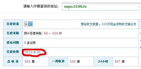 大家可以看看,查询的结果显示是无百度快照,但是其他的收录和百度权重,都没有改变,下面我们再看看通过爱占查询的结果看看,如下图所示: