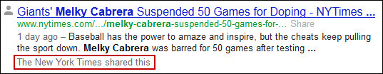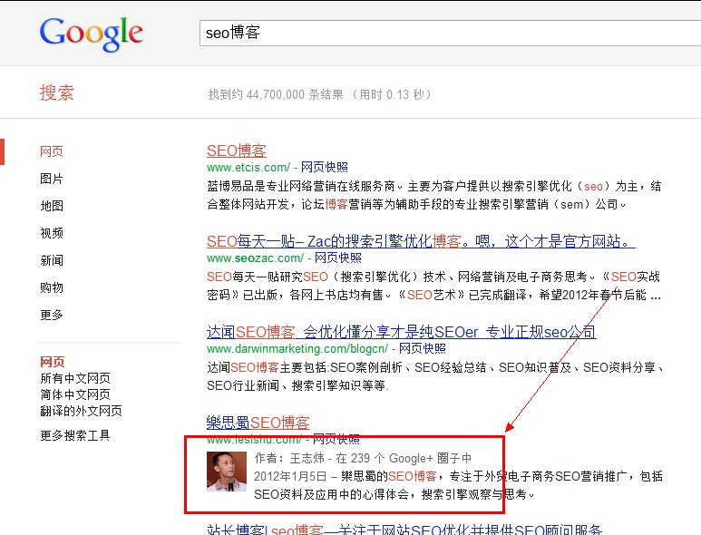 Google+是google自己推出的社交网络,我们都很清楚其对于Google seo的影响,但是具体具体细节很多站长并没有认真的分析。我们目前具体还不了解Google+在Google排名算法中所起的作用,但是我们已经可以看到其对于Google 搜索结果(以下简称SERP)的直观影响。下文中我们将看到四个Google+给Google SERP带来的改变。 一:在Google SERP上的注释 这点可以很清楚的在Google的SERP页面上看到改变,一般我们的SERP只有标题以及描述,但是Google推出Google+后我们可以发现在其的SERP页面的内容中多了一些注释。如下图所示,我们可以看到在相关的搜索信息后有一个分享多该页面的记录,这一分享记录可以使某一个人或者是某一个品牌。而这一些注释的信息就是来自Google+。