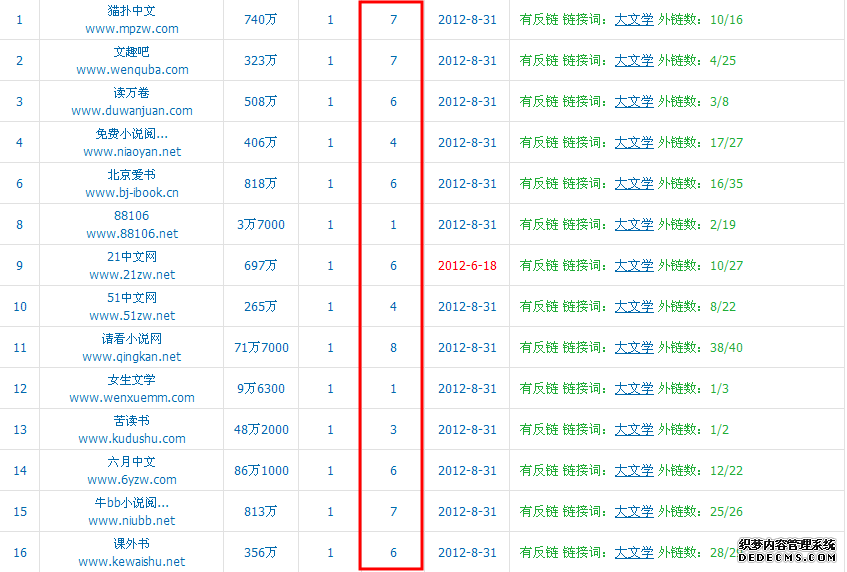先看友情链接,发现有很多权重7或6域名较老的小说站,原来这个新站有很多强大的后盾,至于它们为什么心甘情愿地交换连接,大家可以发挥自己的想象力了,当然首先可以排除购买链接的嫌疑,那么最有可能的就是站群了,幕后很可能是一个团队在操作。