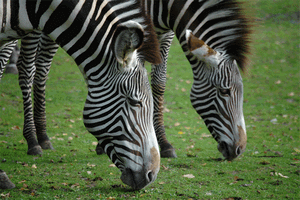 在网站上,“重复”多以“重复的视觉元素”贯穿于站点的全部页面中。这些元素包括颜色、形状、纹理、字体、排版、图形、图片、视频、空间关系、线条的粗细、页眉、页脚、导航、工具栏等等。按统一方式显示的重复元素可以帮助提升网站的组织性,增强其连贯性。元素也可以渐变的方式来实现重复,在重复的过程中,元素可以越来越大,也可以越来越小,正如左图所示的“Repetition”案例。重复方式的多样性可以避免网站变乏味、变枯燥。 重复对增加网站流量很重要 重复是大自然的一部分。假设某一天你外出花一定时间去研究森林里的树木,你会发现其中有很多相似的物种。在冬天观看一群向南飞的鸟,它们会重复摆出各种不同的类“V”字型的图案。在动物园里,在一群斑马中同样可以发现重复的多样性。比如下图中两匹斑马身上有重复的条纹图案,但每个条纹又各不相同。没有任何变化的重复会使网站变得枯燥、无趣、令人厌烦。