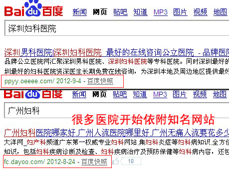 医疗行业是SEO比较繁荣的行业,也是百度比较关注的行业,毕竟医疗行业是百度竞价主要的来源。以医疗行业来代表现金的行业一点也不为过。不过医疗行业也有医疗行业独有的特点。特别在8月底百度算法的更新,对于医疗行业的打击是非常大的。我们就看看算法更新后,医疗行业现在都是什么状况。 搜索首页医院独立站比例降低 这就是8月底更新后的结果,很多医院网站关键字都给降低到了几十名,百名开外。而前十位,本来基本都是高权重的医院网站,现在不是了,独立的医院网站占了一半,大型医疗网站的内页占了一半。特别是有的医院网站,虽然网站没有给K了,单纯的降权,现在连搜索医院名字都排在了几十名外。 百度竞价越发重要 这个应当是理所当然的结果。排名减少了,为了弥补流量的缺水,只能把更多的流量投靠到百度竞价身上。特别是很多原来没有做竞价的,去掉了SEO的流量,咨询量直线降低,为了缓和业绩,也都会选择试水百度竞价。但是大量竞价的投入竞争,对大家都不是好事,竞争到激烈,只会让投入跟收入趋近于平衡的状态而已。所以,百度竞价重要,必不可少,但逐渐成为不了主要的盈利方式。 很多医院开始依附大型网站 这个是最近才发展出来的。本身网站受到了降权,而从最近的几次更新中可以看到,大型网站基本不受影响。而如果选择重新做站、这个周期一般太长、而且也无法避免会再一次受到百度的降权。所以很多医院都选择了依附大型网站,根据大网站的权重传递,可以很快获得很好的排名。其实这也不失为一个好方法。