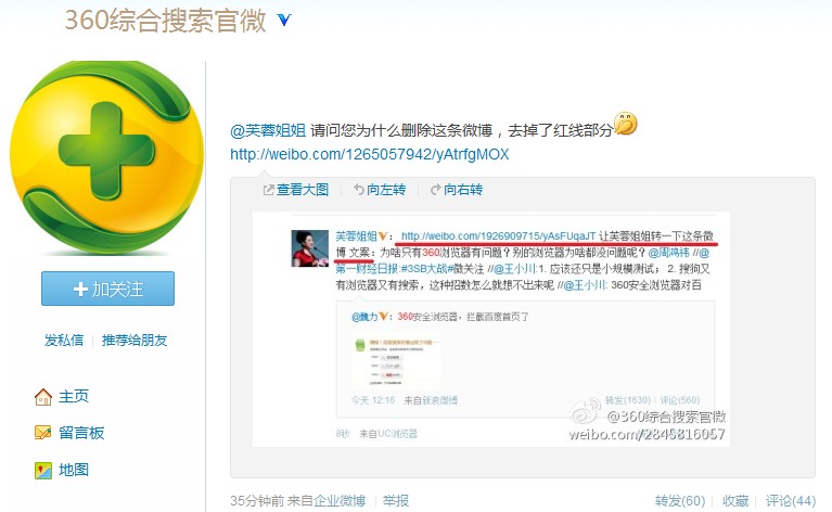 360综合搜索质疑芙蓉姐姐微博(站长网配图)