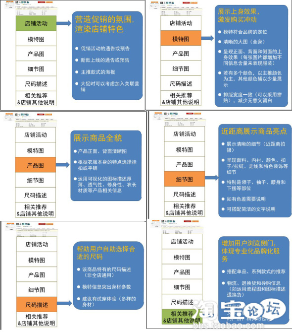 第一种流量和第二种流量都是基于买家有购物需求而产生的,但是由于类目太大并没有很强的精准性,所以转化率会低于关键词搜索带来的流量。”直通车类目搜索“的优势就是可以让自然排名后面的宝贝排到更前面,从而带来一个更多的展示机会,从而引入更多流量,缺点就是---太费钱。 其他流量: 钻石展位;站外广告---与其他网站合作进行的投放;直通车活动报名;站外自然流量。 钻石展位是按照展现量收费的,也就是点击率越高越划算。对于一部分高手来说通常是用来测试图片质量的,并不是拿来引流的,因为钻石展位的流量精准性不高。为什么说钻石展位是拿来测图片质量的呢?因为钻石展位的价格相对便宜,同时展现量大,最重要的是可以得到精确的点击率数据,通过点击率的数据来说明图片的吸引力。当然也有一些卖家对钻石展位有一个很好的研究,也获取了不少高质量的流量。 直通车活动报名,和钻石展位有一些类似,但是是单品图片的展示,按照点击收费,图片和标题中不能出现品牌。这个对于小卖家来说是一个好机会,因为宝贝去除了品牌的优势,并且点击价格较直通车来说相对较低,当然,精准性稍差,所以转化率也稍低。由于成本低,如果做的好,ROI还是能和直通车关键词一拼。 站外广告质量就差了,因为买家在流量其他网站时通常没有购物欲,看到了广告点进来只是因为好奇。同时站外的流量数据不准确,特别一些小网站,会自己刷点击,特别要小心啦。当然,这个还是有优势的,因为价格非常便宜,如果你想要提升品牌形象和拓展流量时候,不妨一试。 站外自然流量是指自己的博客、微博、空间等SNS网站做的宣传,这个流量的质量就要看你的网站做的怎么样了,淘客们都做的很好,多向淘客学习他们的赚钱技术,你也可以赚来这些免费的流量,帮助你转化哦。 三、单品转化影响因素: 大家都知道,宝贝详情页可是店铺装修中的重中之重哈,为什么这样说呢?因为无论是买家通过搜索进来的、还是各种硬广、直通车活动进来的最终付款都是在宝贝详情页面,这个是毋庸置疑的,优化好宝贝详情页会明显的提高店铺转化率!所以宝贝详情页优化值得我们重视的,那么怎么样优化宝贝详情页呢?