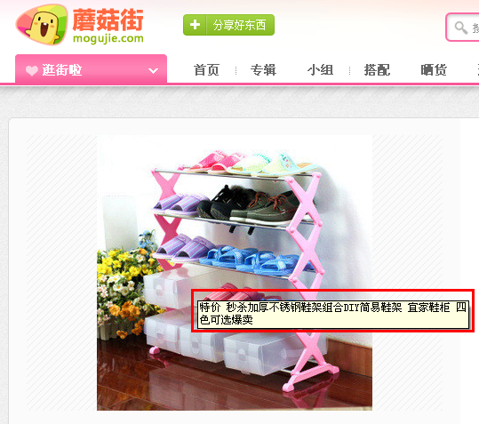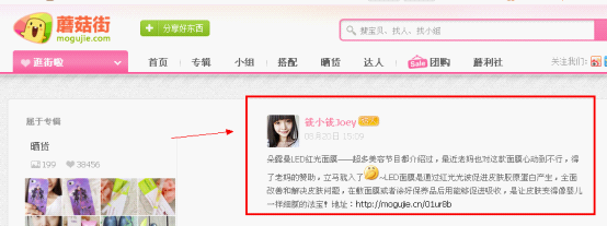 二:丰富的图片文字描述 就目前来看,文字是对搜索引擎最友好的形式。降低站点中图片相似度的最好的形式也是通过文字的描述。对于一些图片站点,假如都是图片的展示,那么即使你的图片色彩缤纷各有不同,但是它们在搜索引擎眼里,他们也是大同小异的。而丰富的页面文字描述刚好能够很好的处理这一问题。我们看看蘑菇街的一个图片页面,如下图所示,丰富的图片下同时搭配上一段简要的文字描述。这样就可以让文字更好的诠释和区分我们的图片信息。