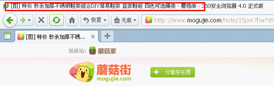 人是一种视觉动物,对于图片的喜好一般会高于文字。而随着互联网技术的不断提升,网站也从过去的文字为主流逐渐过度到图文并茂的时代。尤其是近年来瀑布流网站类型的流行,更体提升了图片在站点中的关键地位。 而作为一名站长我们也不得不面对图片对于搜索引擎不友好的事实,这也限制着图片在网站上的应用。我们要处理好站点的图片seo就需要从细节着手。我们都知道,除了对搜索引擎不友好另一个让图片不好收录的原因在于图片的重复度高。对此本文将从这一方面借助蘑菇街探讨关于图片seo的那些事。 一:为我们的图片页面设置一个独立的标题 标题在一个页面中的地位我想每一个站长都深有体会,搜索引擎对于一个页面的评判很大程度上来自于标题。同时这也是用户第一时间获得页面信息的关键渠道。对于我们站点上的图片可能很多都是重复的,尤其是一些瀑布流网站,如果我们的标题也同图片一样广泛的话,那么这也将制约到图片的收录。如下图蘑菇街的一个图片页面,我们可以看到该页面中有一个详细,独特的标题,这不仅仅让我们的图片页面对于搜索引擎更友好,同时也会让我们的访客耳目一新。