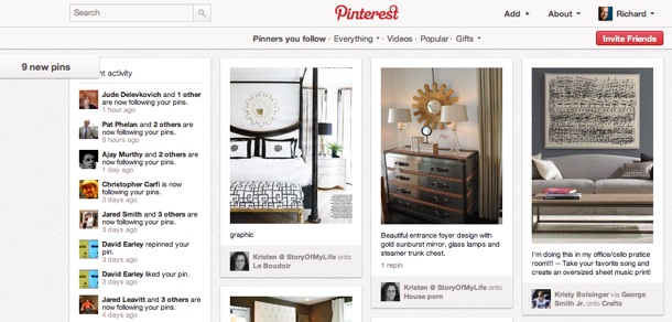 良好的用户体验并非仅仅指用户界面,但是界面确实对产品有很大的帮助。今天我打开Path并简单的试用了一下。在Path上,如果你喜欢某个图片或是其它什么,你可以点击右上角的笑脸图标(如图)。当然,如果你是真的非常喜欢这个图片,那么可以选择心形图标。另外还有三个:一个闪闪的脸,惊讶的脸和悲伤的脸。由此可见,Path使用了5个不同类型的图标来表示“喜欢”,精巧而形象。类似的功能,在Facebook中,仅仅只有“喜欢”和“不喜欢”两个选项。 2. 让用户易上瘾 精巧的界面设计是一回事,但你还需要看到它的价值所在。 产品必须为你解决一个问题,或者是一种愉快的消遣,能够让用户一次又一次地来使用,换句话说就是让用户上瘾。目前网络上有一种比较流行的服务叫Pinterest。它是一种在线的钉板,现在已经让不少用户上瘾了。目前的互联网上,大多数社交产品更注重于文本形式的展现,而Pinterest 创造了一种完全可视化的用户体验模式。它满足了这样一类需求:提供给用户一定的空间,允许他们存储一些相关主题的照片,例如围绕婚纱礼服题材的图片。