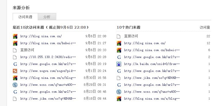 这个很关键,也是很多SEO没有注意的地方,必须要引起大家的重视。做到以上这些,你就可以放心地提交你的博文了。 3.要学会用新浪进行数据分析。可能大家都没怎么听说过新浪也可以进行数据分析吧,来为大家介绍下。点击你博客的博客访问人数,就会自动进入博客的后台了。这个与百度统计是有很多相似的地方的,我们可以对我们的新浪博客进行分析和总结。请看下图: