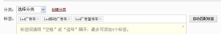 所以不仅仅大家在设置新浪博客路径的时候可以用关键词的全拼,在做网站的时候,建议网址也可以设置成关键词的全拼,这样是会获得关键词的投票的。很多人喜欢用关键词的第一个字母去做网址,这样百度是无法进行检索的,而且也不方便用户进行记忆。 2.新浪博客发博文要注意的问题。很多人申请新浪博客后,就开始疯狂地发一些内容在上面,这样是不合理的。做新浪博客也是需要我们去养,搜索引擎的信任是得慢慢去培养,所以新浪博客我们最好是有规律地进行更新,而不是一时的心血来潮。建议大家在刚开始发博文的时候,不要带锚文本链接,因为这样会导致你文章不收录,要等到你的新浪博客收录正常后,才去带链接。另外要提醒大家的是,大家总是很贪心,总想一篇文章多带一些链接,其实根本没有必要,我们一篇文章只需带一个链接已经足够,太多反而影响收录和长尾词的排名,并且影响用户阅读。要引起大家注意的是,发新浪博文的时候,千万不要忘记填写标签,标签上要写你的关键词,这个直接影响到用户检索,如我的关键词是led广告车、led移动广告车、led广告宣传车,我就会这样写: