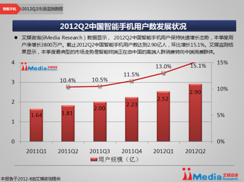一、为什么需要一个友好的移动网站 根据《2012Q2中国 移动应用市场季度监测报告》,截止2012年第二季度,中国智能手机用户达到2.9亿,环比增长15.1%。