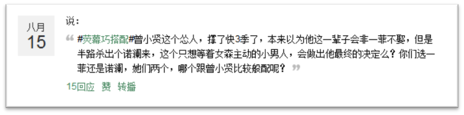 #3 请适时引导豆瓣er 除了一些日常的沟通与交流能够将豆瓣er引导到品牌之外,在活动过程中对豆瓣er的引导也非常重要,正如福根儿与留一手的投票拉锯战,我们在图片内容里面引导了福根儿,接着又将他们两个同时参加活动的事件及时分享出来,引导他们的拥护者来观战。