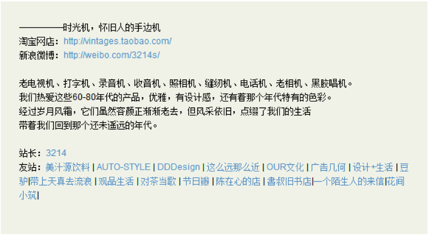 当然,在我们选择奖品的时候,也没有忽略奖品的附加价值,我们选择了从时光机豆瓣小站来挑选小站的奖品,这样店主也与我们友情链接,同时在自己的小站、新浪微博同时帮助我们来推广我们的活动,这样一来,也为我们吸引了一批奖品的爱好者来喜欢我们。