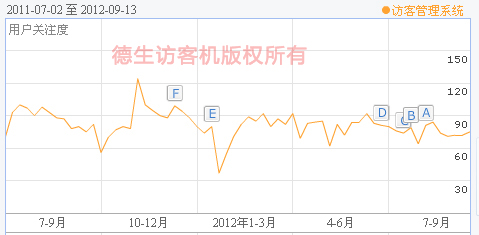 2012网商大会中马云闭幕演讲中曾提到“企业家要听消费者,听的是市场,因为市场才能决定未来”。听了这句话之后,维宝联想到这一年多来,我们所处行业的一些变化,在商务或者市场人员看来,这些变化都是微不足道的,但是这每一次变化或许都决定着网站每天的访客,决定着市场消费者对于产品的需求。 访客机行业早在09年之前几乎还是块空白的区域,国内做访客机的也就德生一家独大,所以在很多的地区,每个地方对于这个产品的称呼也尽不相同。由于之前德生率先提出了“访客管理系统”、“访客登记系统”这个词,而且是采用分体机的形式,这个词的搜索量也是最最多的,下面的一张图就是“访客管理系统”的百度指数的一个变化过程: