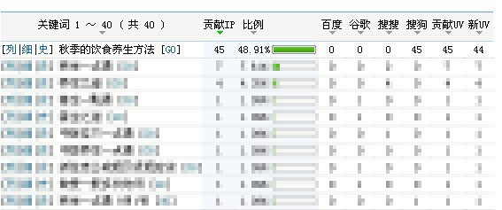 今天星期一,我还是跟往常一样,熟练的打开电脑(搞IT的都这样吧!),观察几个网站的流量排名等情况。小弟我勤勤恳恳,只是希望能业余时间挣点烟钱!我最近做了个养生类网站,叫养生一族养生网!做的时间不长,因为文章前一段时间被百度降权了,还处在恢复阶段,流量几乎甚小,没办法只能靠其他搜索引擎来流量了,因为新站,权重低,pr低,几乎靠长尾关键词很难获取好的流量(ps:降权的原因就是因为文章质量不高),平常精力也有限,更新和推广力度都不是很大。平常养生一族养生网也就一百左右的流量!不过最近几天,我为了恢复降权,也就随机写了几篇高质量的原创文章,关于秋季的,这不是马上快秋季了嘛!效果还真是不错,刚写完,搜狗反应也挺快,收录了,并且排名也不错!!一看51啦流量统计吓一跳,单纯一个关键词就给我带来了50多ip,并且是在搜狗搜索引擎,如果是百度,那流量肯定突飞猛进!如图: 总流量图: