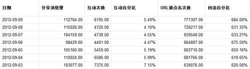 [导读]这是一个聚焦小产品细节从而带来超大回流的经典案例。从后台数据系统中可以看到,唱吧在腾讯微博中的数据曲线划出了一个完美的“∫”型,即快速越过爆发点,直接到达一个新的高度。 这是一个聚焦小产品细节从而带来超大回流的经典案例。从后台数据系统中可以看到,唱吧在腾讯微博中的数据曲线划出了一个完美的“∫”型,即快速越过爆发点,直接到达一个新的高度。这个高度,是每天回流70万UV左右。 过程中反馈出来的一些数据非常值得借鉴与参考,不妨一看。这是后台系统中,唱吧几天内的分享及回流数据:
