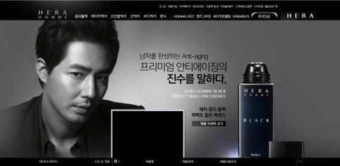 这是张东健代言的Hera男士化妆品,官网基本全黑色调,加上金属光泽和质感,男人硬朗风格表露无疑。 金属光泽,金属光泽表现既内敛又有爆发力,很有质感也很酷,总体给人感觉是低调而华丽。配上张东健硬朗的男人形象,就更能得到26-35这个年龄阶段男人的认可。这种风格适用于汽车、男性用品、数码和运动。