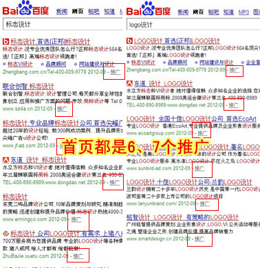 百度竞价已经逐渐蔓延到各行各业,只要搜索存在商业利润的词汇,基本都有好几个竞价排在前面。就连小小的标志设计行业,也是竞价满屏。