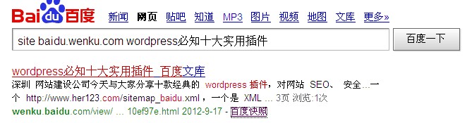 访问不了百度快照 从中可以看得出来,我在百度文库“wordpress必知十大实用插件”的源代码里面查找不到我发的链接。通过百度快照进入不了原始的文件,大家都知道,现在的百度文库是可以复制粘贴的了,所以百度文库的外链对网站的本身没有多大的影响。但是如果文档的质量度高的话,用户会主动地通过链接进入网站。所以做百度文库一定要以质量为前提,不能为了发外链而做百度文库。应该这也是为了提升内容的质量度来满足用户的需求才决定这样做的吧。 文字来源: ,转载请注明出处 (责任编辑:admin) |