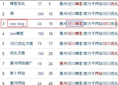 在此前百度更新,从惠州SEO博客排名中有这么一个小发现,在此与大家分享分享,或许有些朋友对于这个也早有了解,因此呢,高手们就略过吧~ 下面为惠州SEO博客在快照更新后的排名,有图有真相(可惜现在排名又掉了下来了呀):