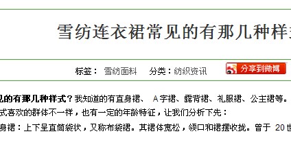 这时候我们搜索“雪纺是什么面料”的时候就在首页了,用了一天的时间。如果有什么说的不好的 欢迎拍砖: