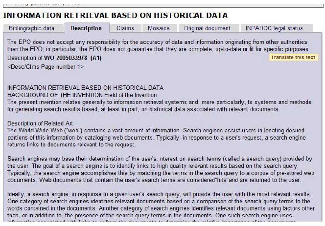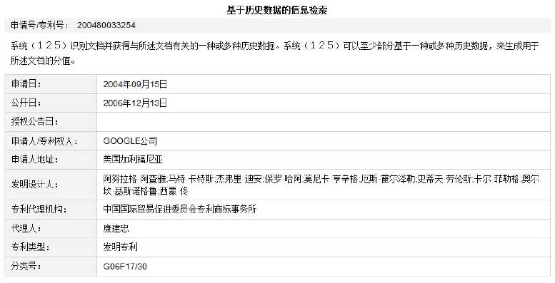 2003年12月31日,Google在美国专利局提交了一份专利,名字叫做“基于历史数据的信息检索(原文:Information retrieval based on historical data)",如图所示。