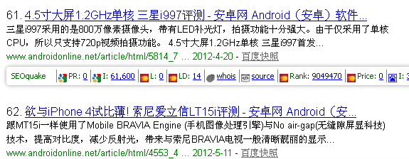 这个网站是做安卓软件和安卓游戏下载的,其网站的优化和内容也是围绕着这2个主题,可是在收录中却有不少这种手机资讯类的新闻。用户在搜索安卓软件和安卓游戏的时候是想下载,是想下载与之机型相搭的软件和游戏,你更新这么多手机类的新闻用户感兴趣吗?他下载软件和游戏会产生购买手机的概率是多少呢?显然这样的资讯被收录多了后对网站主题会稀释,进而会影响网站主关键词的排名。 一个站长的真正价值在于做哪些优化比不做哪些优化对用户更加重要,收录是要,但是要跟网站主题相关的,能让用户产生浏览价值的。 该文章由安卓在线()编辑,首发A5,转载务必注明出处。 (责任编辑:admin) |