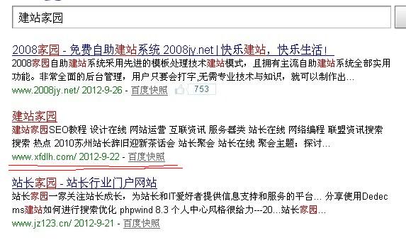 先从网站的标题与关键词来看,这个网站的标题与关键词只有一个词语:建站家园。从中我们就可以看出一个问题,这个网站的所有权重都积累在了这个词语上,站长可以想象一下,假如你的网站标题与关键词中需要优化的词语达到了十几个,十几个的权重与一个相比谁站优势呢?从中我们可以得到:一个网站只做一个关键比做N个关键词的效果更好。